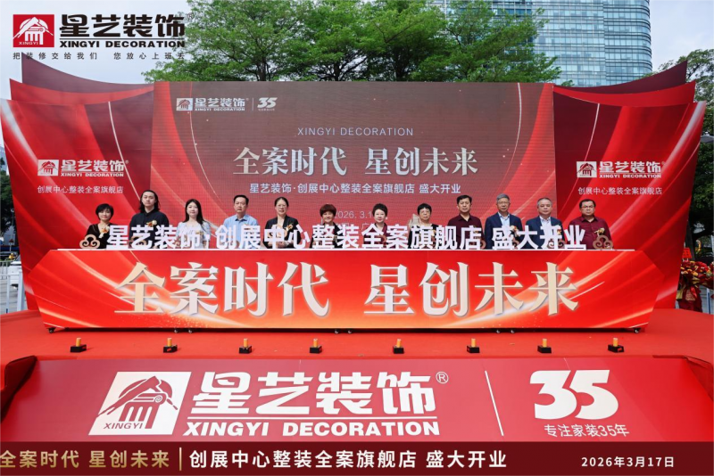 2026年3月17日,星藝裝飾創展中心整裝全案旗艦店在廣州正式亮相,以“全案時代 星創未來”為主題的開業活動匯聚行業協會代表、合作伙伴及主流媒體,共同見證廣州家裝行業從碎片化服務向一體化品質服務轉型的重要實踐。